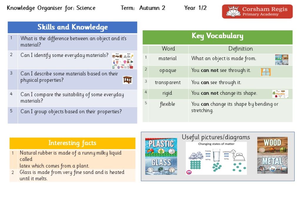 This term we will learning about everyday materials and what their special features are. We will look at different objects and find out what they are made of and why different materials are used for specific things. We will also test some materials to find out more about their characteristics.