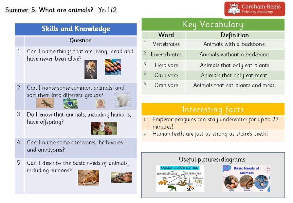 This term our focus is Science and Design and Technology. We will learn about the features of different animals and what living things need in order to survive. We will learn about how animals are categorised into different groups and learn which are herbivores, carnivores and omnivores. Our artistic talents will be used when we create environments for the fish we will make using clay.